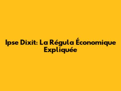 Ipse Dixit: La Régula Économique Expliquée