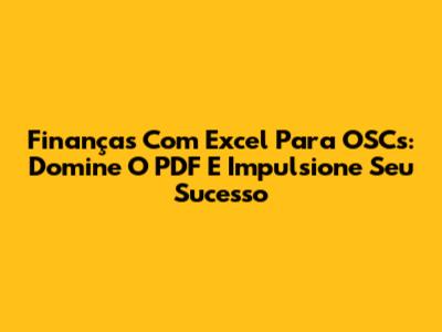 Finanças Com Excel Para OSCs: Domine O PDF E Impulsione Seu Sucesso