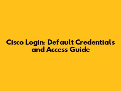 Cisco Login: Default Credentials And Access Guide