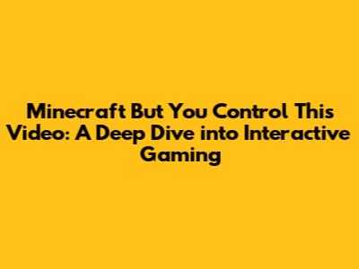 Hey guys! Ever stumbled upon a Minecraft video where you felt like you could make the gameplay even more epic if you were in charge? Well, the concept of "Minecraft but you control this video" takes that feeling and turns it into reality. This innovative form of content creation has exploded in popularity, offering viewers a unique and engaging experience that blurs the lines between watching and playing. In this article, we're going to dive deep into the world of interactive Minecraft videos, exploring what they are, how they work, and why they've become such a hit within the gaming community. We’ll also touch upon the technical aspects that make these videos tick, and how creators are pushing the boundaries of interactive content. So, buckle up, grab your pickaxes, and let's explore the exciting realm where you're not just a viewer, but the director of the adventure!