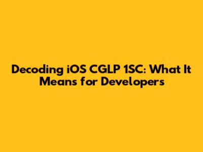 Decoding IOS CGLP 1SC: What It Means For Developers