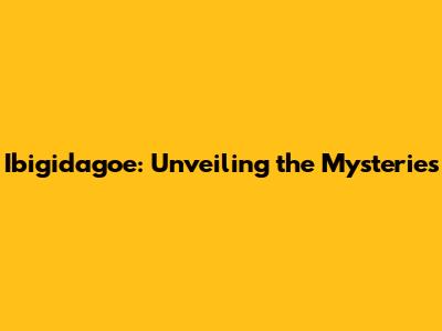 Ibigidagoe: Unveiling The Mysteries