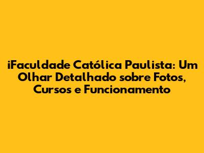 Ah, a iFaculdade Católica Paulista! Se você, assim como eu, está curioso para saber mais sobre essa instituição, seus cursos, e claro, as fotos que mostram um pouco do dia a dia, chegou ao lugar certo, meu amigo. Vamos mergulhar nesse universo e desvendar tudo o que a iFaculdade tem a oferecer. Prepare-se para uma jornada informativa e cheia de dicas! E aí, animados para começar?