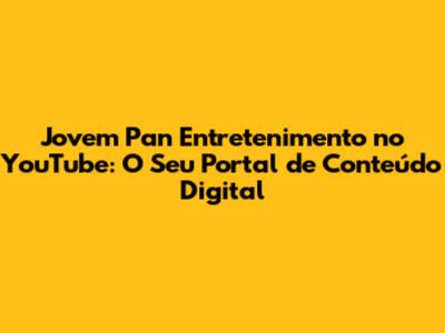 A Jovem Pan Entretenimento no YouTube é muito mais do que um canal de vídeos; é uma plataforma completa de entretenimento que conquistou o coração de milhões de brasileiros. Com uma programação diversificada, linguagem jovem e descontraída, e constante interação com o público, a Jovem Pan se tornou uma referência no cenário digital. Se você ainda não conhece o canal, não perca mais tempo! Inscreva-se, ative as notificações e prepare-se para se divertir e se manter informado com os melhores conteúdos do universo do entretenimento. A Jovem Pan está sempre inovando e trazendo novidades, então, fique ligado para não perder nada. A Jovem Pan Entretenimento é a sua porta de entrada para um mundo de diversão e informação! Explore os programas, participe dos debates e faça parte dessa comunidade que cresce a cada dia. A Jovem Pan espera por você! E lembre-se, a Jovem Pan Entretenimento é o seu destino certo para estar sempre por dentro das últimas novidades e tendências. Não perca tempo, comece a assistir agora e descubra tudo o que a Jovem Pan tem a oferecer! A Jovem Pan está sempre pronta para te divertir e te manter informado. Então, prepare a pipoca e aproveite! Seja parte dessa experiência incrível e divirta-se com a Jovem Pan Entretenimento! A Jovem Pan agradece a sua audiência e espera você! A Jovem Pan te espera! Junte-se à diversão! Divirta-se! A Jovem Pan é você!