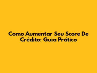 Como Aumentar Seu Score De Crédito: Guia Prático