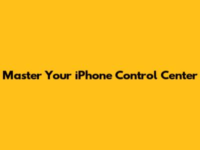 Master Your IPhone Control Center