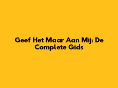 Geef Het Maar Aan Mij: De Complete Gids