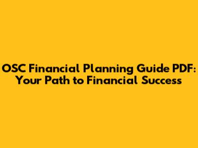 OSC Financial Planning Guide PDF: Your Path To Financial Success