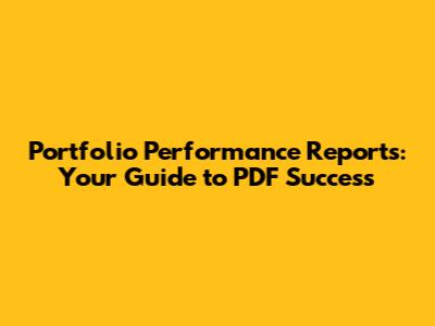 Portfolio Performance Reports: Your Guide To PDF Success