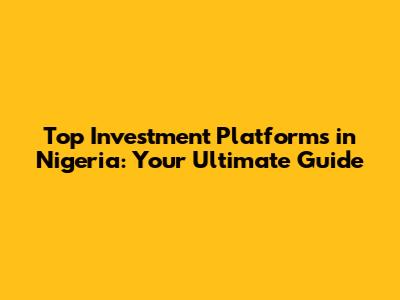 Top Investment Platforms In Nigeria: Your Ultimate Guide
