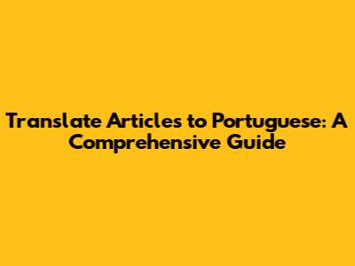 Hey guys! Ever needed to translate an article into Portuguese? Whether it's for business, studies, or just pure curiosity, getting it right is super important. This guide will walk you through everything you need to know to nail that translation. Let's dive in!
