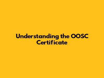 Understanding The OOSC Certificate