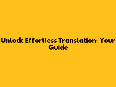 Unlock Effortless Translation: Your Guide