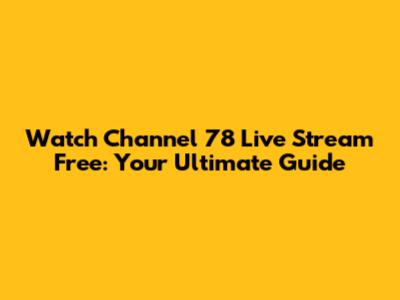 Watch Channel 78 Live Stream Free: Your Ultimate Guide
