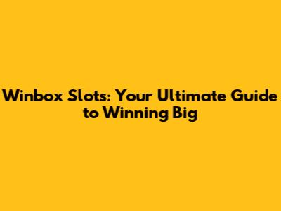 Winbox Slots: Your Ultimate Guide To Winning Big